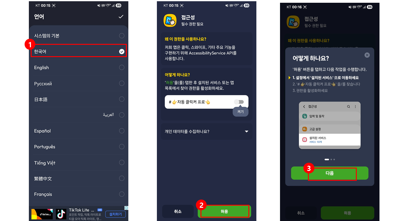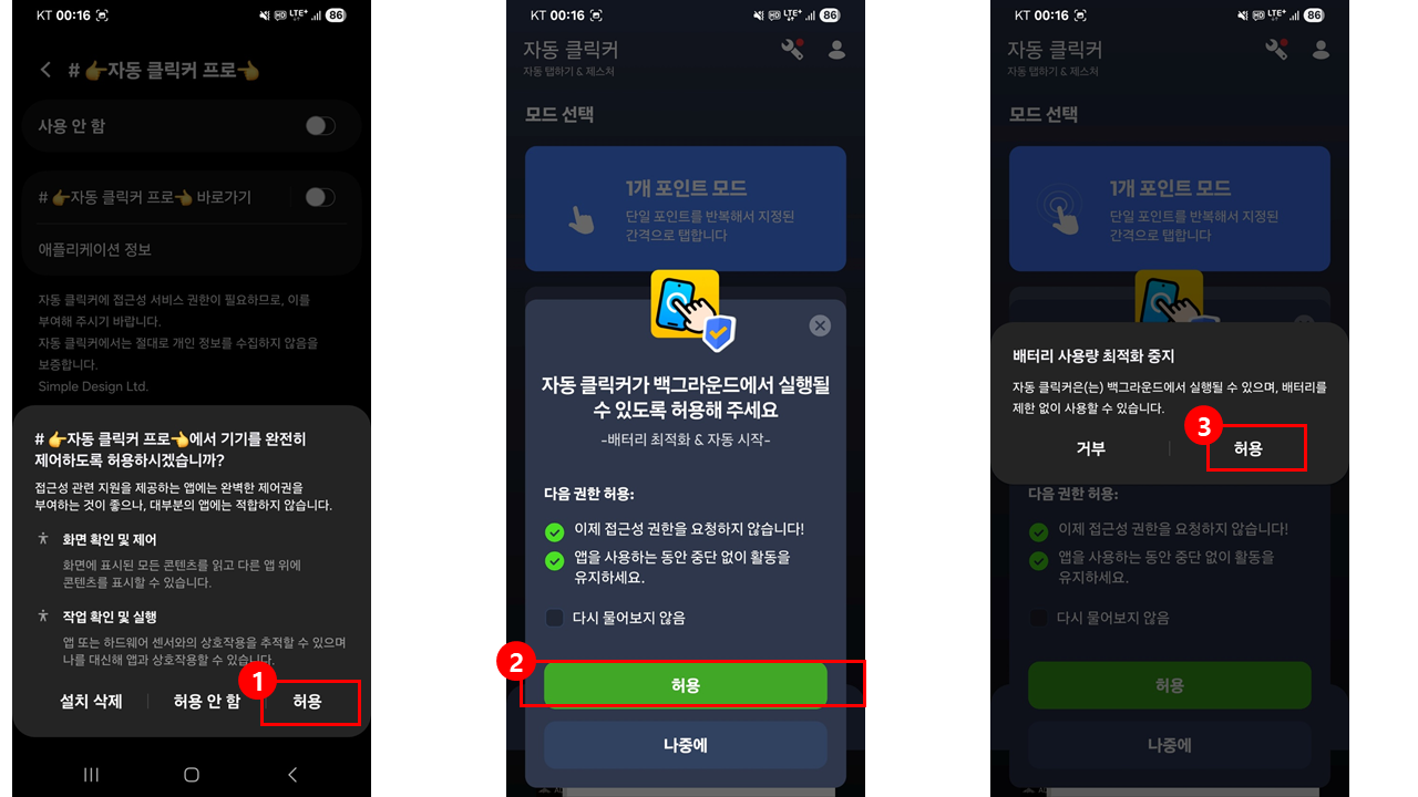 8. 자동 클릭커 알림설정 > 허용안함(추천)